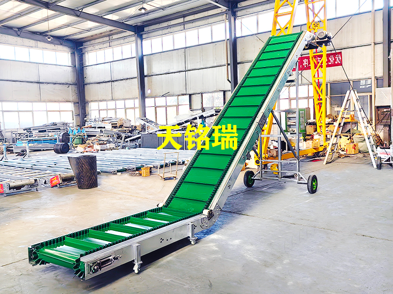 承载的产品比较重,和生产线同步运行,可以实现产品的爬坡,生产的节拍不是很快﹔以链板面作为承载,可以实现产品的平稳输送。